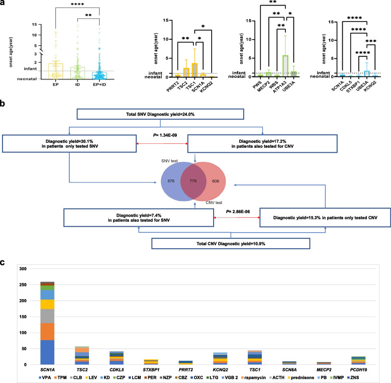 Methods: We provide a clinical and genetic landscape of 2261 Chinese patients performed chromosome microarray analysis (CMA) or next-generation sequencing to uncover causal copy number variants (CNVs) or single-nucleotide variants (SNVs). Patients were stratified into three groups: EP (374 cases), ID (863 cases), and EP + ID (1024 cases).