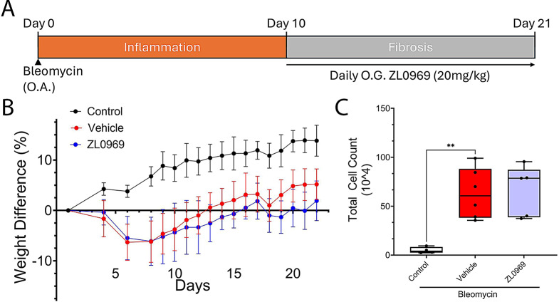 Methods: Activation of the Bromodomain-containing protein 4 (BRD4) epigenetic regulator in distinct stem cell populations was quantitated in a high-resolution scRNA-seq time course of bleomycin-induced injury, and confirmed in scRNA-seq studies in human IPF. A potent, selective, and orally bioavailable BRD4 inhibitor (BRD4i, ZL0969) was rationally designed and synthesized. The effect of BRD4i on myofibroblast transition, progenitor cell expansion and fibrosis was evaluated using a therapeutic experimental design in C57BL6/mice.
