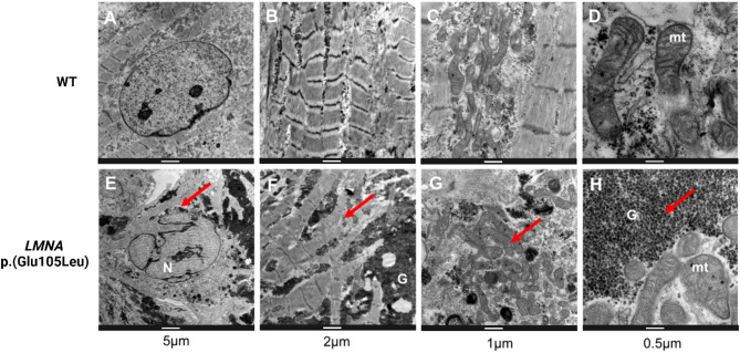 A novel LMNA p.(Glu105Leu) variant was identified in five families with dilated cardiomyopathy (DCM), revealed as a local founder variant originating approximately 650 years ago. Genetic testing and clinical analysis of 795 DCM patients demonstrated that probands with this variant typically present with severe DCM in their sixties, characterized by high prevalence of late gadolinium enhancement, arrhythmias, and conduction disorders. Time-to-event analysis suggested a later onset of clinical symptoms compared to other LMNA variants, with a trend towards longer event-free survival. Microscopic imaging of patient fibroblasts, induced pluripotent stem cell-derived cardiomyocytes (iPSC-CMs), and heart tissue confirmed structural nuclear LMNA-associated abnormalities. Patient iPSC-CMs exhibited distinct sarcomeric disorganization, increased glucose uptake and glycogen content, reduced mitochondrial function and biogenesis, and delayed contractile function. These findings support the pathogenicity of the variant and demonstrate its profound impact on structural and metabolic functions in cardiomyocytes.