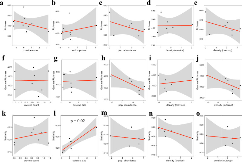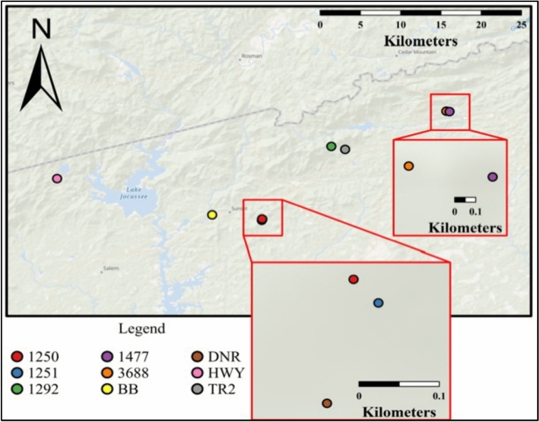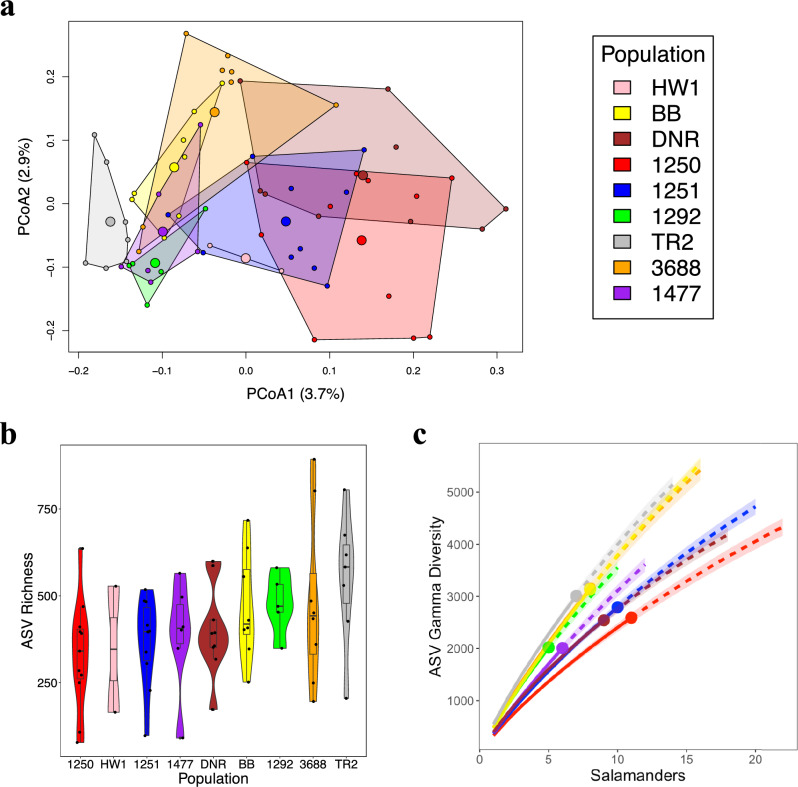 Spatial variation of skin-associated microbiota in a green salamander metapopulation
