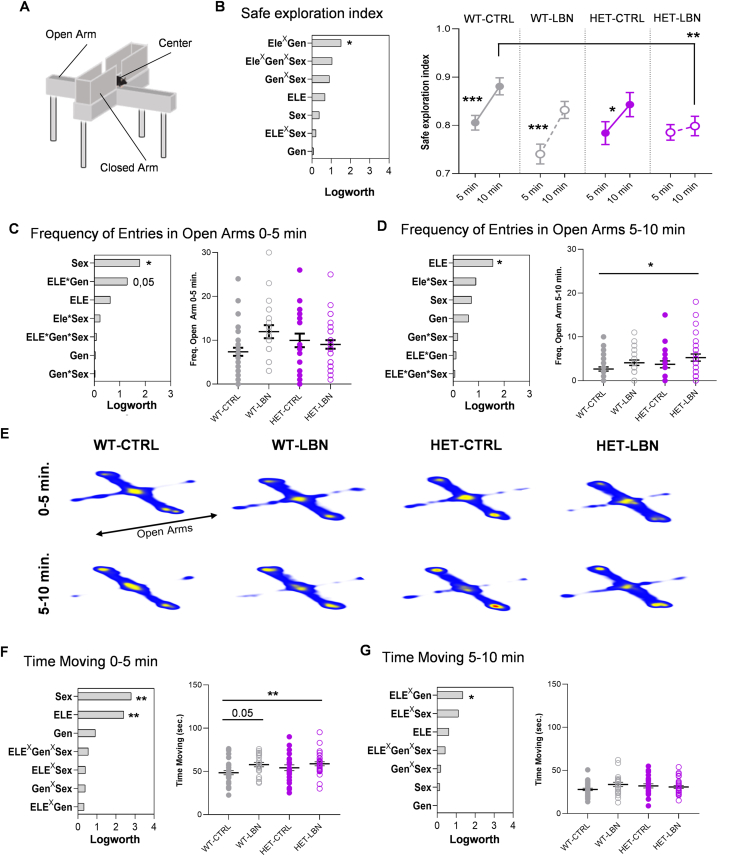 The etiological complexity of psychiatric disorders arises from the dynamic interplay between genetic and environmental vulnerabilities. Among the environmental components, early-life adversities are a major risk factor for developing a psychiatric condition. Yet, the interaction between adversities early in life and genetic vulnerability contributing to psychopathology is poorly understood. To fill this gap, we took advantage of the ideally controlled conditions of a pre-clinical approach. We raised a mouse model with genetic predisposition for multiple psychiatric disorders (autism spectrum, schizophrenia, bipolar disorder), the Cntnap2 +/- mouse, with limited bedding and nesting (LBN), a well-established paradigm to induce early-life stress in rodents. These mice were compared to LBN-raised Cntnap2 +/+ littermates, as well as parallel groups of Cntnap2 +/+ and Cntnap2 +/- raised in standard conditions. Using a battery for behavioral phenotyping we show that early-life adverse experience shapes non-overlapping phenotypic landscapes based on genetic predisposition. Specifically, LBN-raised Cntnap2 +/- mice displayed a perseverative risk-taking behavior in the elevated plus maze. Interestingly, this trait was highly predictive of their success in social interaction, suggesting that the intrusion of anxiety into the social behavioral domain may contribute to extreme gain- or loss-of function in sociability. Finally, we show that LBN promotes hypertrophy of post-synaptic densities in the basolateral nucleus of the amygdala (BLA), but only in Cntnap2 +/- raised in LBN this is associated with microglia abnormalities. We conclude that the interplay between early-life adversities and Cntnap2 haploinsufficiency alters emotion regulation in mice, putatively as a consequence of deficient synaptic scaling in the BLA.