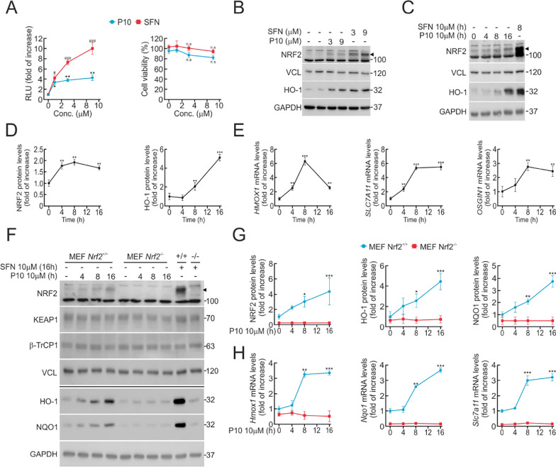 Methods: After an in silico screening of ∼1 million compounds, including molecular docking analysis, ADMET evaluation, and molecular dynamics simulations, we identified and characterized a novel small molecule, P10, which inhibits β-TrCP1/NRF2 interaction. The compound was validated using luciferase reporter assays, co-immunoprecipitation, and ubiquitination experiments. The specificity of P10 was assessed by comparing NRF2 signatures in wild-type and Nrf2-null cells. The impact of NRF2 activation induced by P10 was investigated by evaluating its antioxidant and anti-inflammatory responses against tert-butyl hydroperoxide and lipopolysaccharide, respectively. Finally, wild-type and Nrf2-null mice were administered P10 intraperitoneally at a dose of 20 mg/kg daily for five consecutive days. Four hours before sacrifice, all animals received a lipopolysaccharide (LPS) injection at 10 mg/kg.