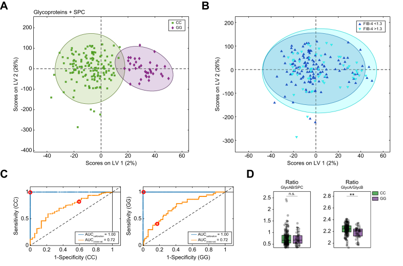 Methods: We analyzed 353 serum samples of patients with MASLD from two German tertiary centers using nuclear magnetic resonance (NMR)-proteometabolomics. Patients were stratified by PNPLA3 rs738409 C>G genotype: 'CC', 'CG', and 'GG'. Metabolites, lipoproteins, and glycoproteins were assessed based on fasting status.