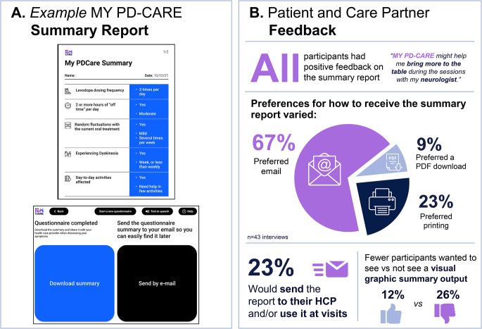 Conclusions: People with PD and their care partners perceived MY PD-CARE as useful and acceptable for tracking and increasing awareness of symptoms and facilitating discussions with HCPs. Participant feedback helped optimize the updated design of this digital tool.