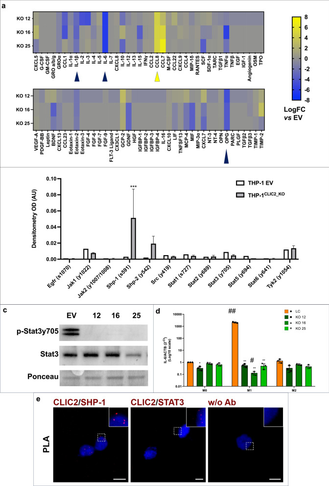 Chloride intracellular channels (CLICs) are a family of six evolutionarily conserved proteins with diverse functions. Previously, we identified CLIC2, as the fifth-ranked master regulator associated with diffuse-type gastric cancer (dGC) showing increased expression in tumors. Here we used bulk, as well as single cell sequencing datasets of dGC, to demonstrate for the first time a direct association of CLIC2 with the microsatellite stable GC and, furthermore, the expression of CLIC2 in macrophages (MCs), and endothelial cells (ECs) populating gastric tissue. We generated CLIC2 knock-out THP-1 monocytic cells (THP-1CLIC2_KO) determining that while CLIC2 deletion had no observable effect on monocytes, THP-1CLIC2_KO macrophages exhibited significant morphological changes, including increased membrane protrusions, and upregulated expression of CD11b, CD11c, CD80, and CD86 markers. Furthermore, cytokine secretion profiling of THP-1CLIC2_KO differentiated cells revealed elevated secretion of CCL8, alongside reduced secretion of IL-1β, IL-6, and osteoprotegerin (OPG). Additionally, we observed increased phosphorylation of Shp1 phosphatase with the concomitant absence of Stat3 phosphorylation, which impaired downstream signaling, in line with the evidence that Clic2 interacts with both Shp1 and Stat3. Based on these findings, we suggest that CLIC2 plays a pivotal role in regulating monocyte-to-macrophage differentiation by modulating the Stat3 signaling pathway, thus enhancing gastric cancer progression by establishing a tumor-permissive microenvironment.