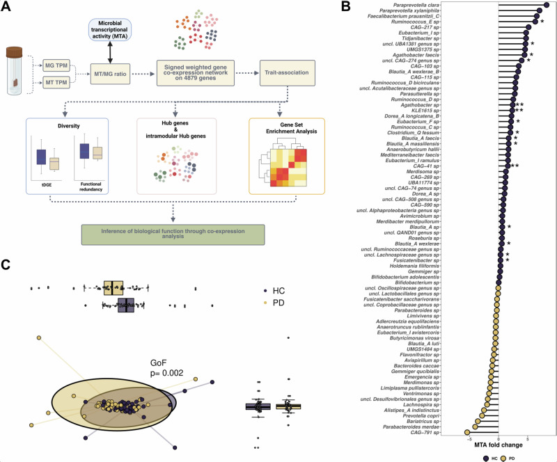 Human gut microbiome gene co-expression network reveals a loss in taxonomic and functional diversity in Parkinson's disease