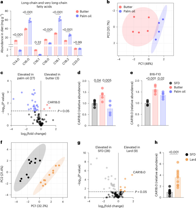 Obesity increases the risk of many cancers and impairs the anti-tumour immune response. However, little is known about whether the source or composition of dietary fat affects tumour growth or anti-tumour immunity in obesity. Here, we show that high-fat diets (HFDs) derived from lard, beef tallow or butter accelerate tumour growth in a syngeneic model of melanoma, but HFDs based on coconut oil, palm oil or olive oil do not, despite equivalent obesity. Using butter-based and palm oil-based HFDs as examples, we find that these dietary fat sources differentially regulate natural killer and CD8 T cell infiltration and function within the tumour microenvironment, governed by distinct effects on the plasma metabolome and intracellular metabolism. We identify diet-related lipid intermediates, namely long-chain acylcarnitine species, as immunosuppressive metabolites enriched in mice fed butter compared to palm oil HFD. Together, these results highlight the significance of diet in maintaining a healthy immune system and suggest that modifying dietary fat may improve cancer outcomes in obesity.
