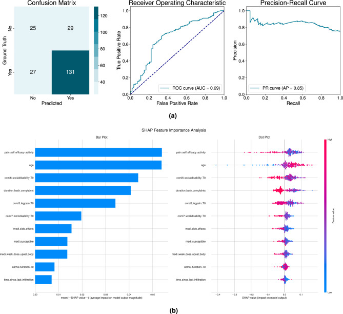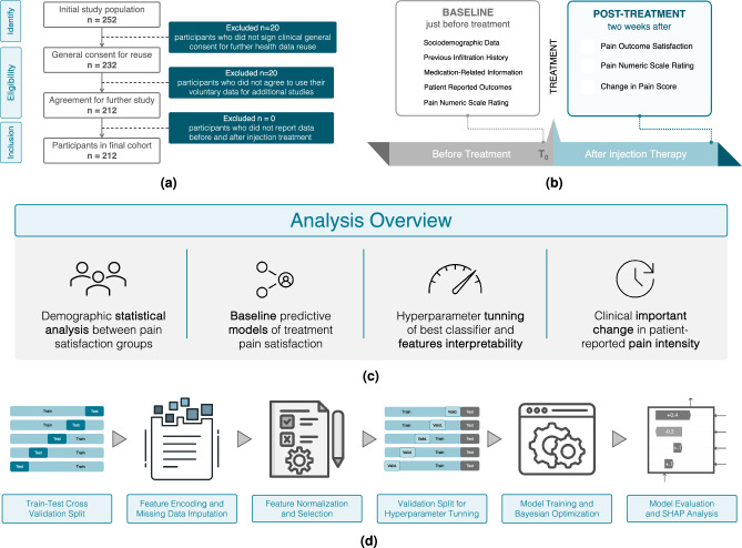 Chronic low back pain (CLBP) is a prevalent condition significantly reducing quality of life. Lumbar steroid injections are a widely used conservative treatment option, but their effectiveness varies among patients. This study aimed to develop a predictive framework that integrates clinical variables and patient demographics to evaluate post-treatment pain satisfaction in CLBP patients undergoing lumbar injection therapy. We performed a retrospective analysis of 212 CLBP patients to evaluate the treatment satisfaction and pain intensity changes using the Numerical Rating Scale (NRS). A Random Forest model, validated through nested cross-validation, achieved an average precision of 0.865 in predicting treatment satisfaction. SHapley Additive exPlanations (SHAP) analysis revealed pain self-efficacy features, particularly coping mechanisms and household activities, as key outcome predictors of post-treatment pain satisfaction. Clinically significant pain reduction thresholds were identified at an absolute change of 2.09 and a relative change of 30 % on the NRS. Our findings reveal the biological and social factors influencing post-treatment pain in CLBP patients. The identified pain reduction thresholds and predictors may help clinicians to develop individualized management strategies, optimizing treatment outcomes and improving patient care. Future research should refine the predictive model by incorporating additional multimodal variables to better capture CLBP heterogeneity.