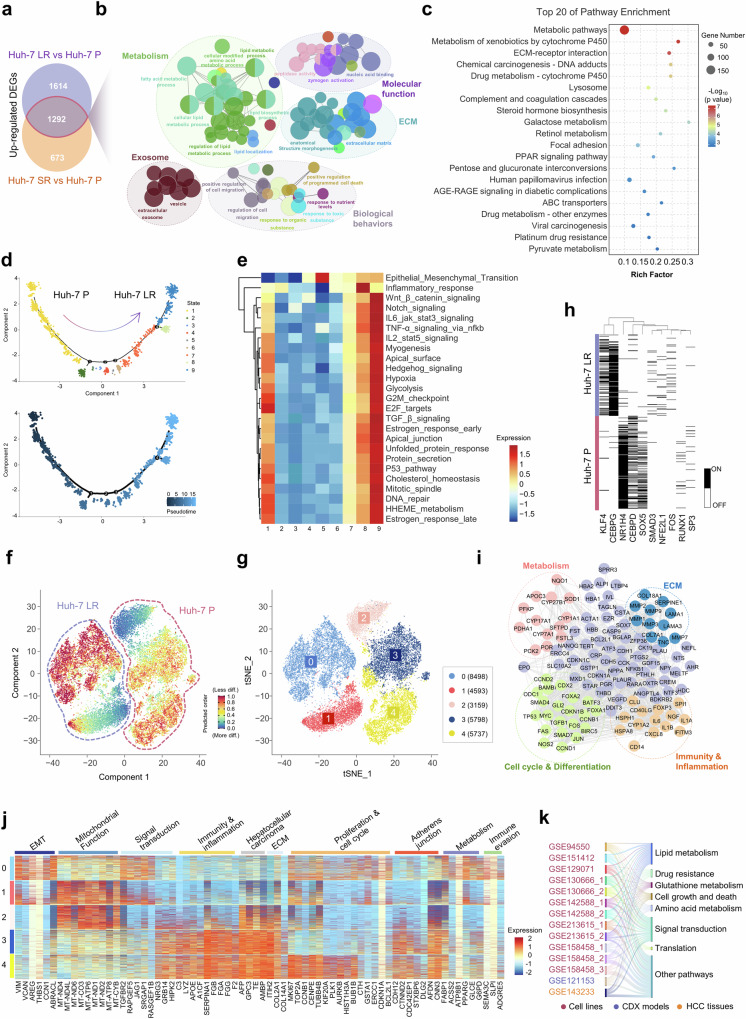 Hepatocellular carcinoma (HCC) is a leading cause of cancer-related mortality, and resistance to systemic therapies remains a significant clinical challenge. This study investigated the mechanisms by which metabolic reprogramming contributes to systemic treatment resistance in HCC. We established HCC cell lines with multidrug resistance characteristics and observed enhanced metabolic activity in these cells. Integrated multiomics analyses revealed hyperactive glucose‒lipid and glutathione metabolic pathways that play critical roles in supporting tumor cell proliferation and survival. We constructed a metabolic reprogramming atlas for HCC-resistant cells and identified aldo-keto reductase (Aldo-keto reductase family 1 Member B1, AKR1B1) as a key regulator of this reprogramming, which sustains drug resistance by regulating energy metabolism and enhancing stress tolerance. Importantly, AKR1B1 expression levels are closely associated with drug resistance and poor prognosis in HCC patients. The secretory nature of AKR1B1 not only underscores its predictive value but also facilitates the intercellular transmission of drug resistance. In terms of overcoming resistance, the AKR1B1 inhibitor epalrestat significantly mitigated drug resistance when it was used in combination with standard therapies. These findings underscore the importance of metabolic reprogramming in the development of HCC resistance. AKR1B1, a key enzyme that regulates metabolic reprogramming, has been identified as a potential biomarker and therapeutic target, providing new insights into overcoming resistance in HCC treatment.