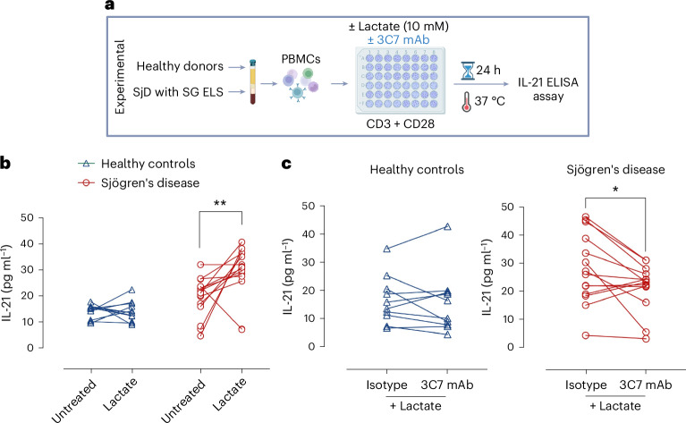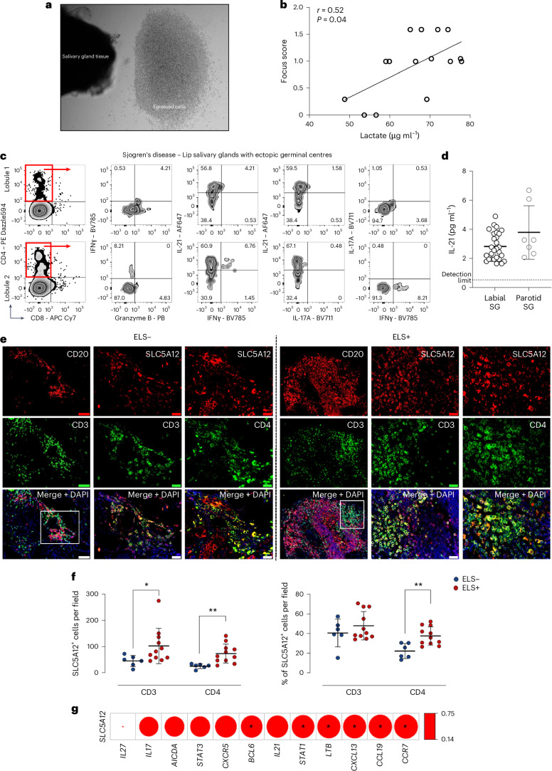 Ectopic lymphoid structures (ELS) are aggregates of lymphoid cells that often form within inflamed tissues in patients with autoimmune diseases, cancer, infectious diseases and cardiovascular conditions. These structures drive B cell maturation into memory B cells and plasma cells through B cell and T cell co-stimulation, and their role in pathogenesis is increasingly recognized. Understanding how ELS develop and persist in inflamed tissues is essential for elucidating the pathogenesis and treatment responses in diseases in which they have a prominent role. Here we show that metabolic pathways and specific metabolites, in particular lactate, are master regulators of ELS organization in Sjögren's disease (SjD), the second-most common autoimmune rheumatic disease. Furthermore, inhibiting lactate uptake by lactate transporters, specifically by SLC5A12 blockade, represents a previously unappreciated checkpoint in autoimmune inflammatory diseases. This approach results in multidimensional pro-resolution effects, including reduced inflammatory cytokine levels, enhanced T cell egress from inflamed sites and diminished T cell and B cell areas and their segregation within ELS.
