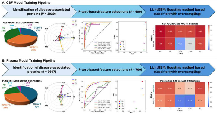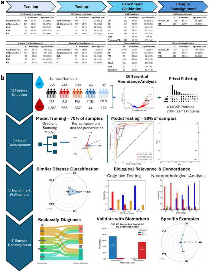 Protein-based Diagnosis and Analysis of Co-pathologies Across Neurodegenerative Diseases: Large-Scale AI-Boosted CSF and Plasma Classification