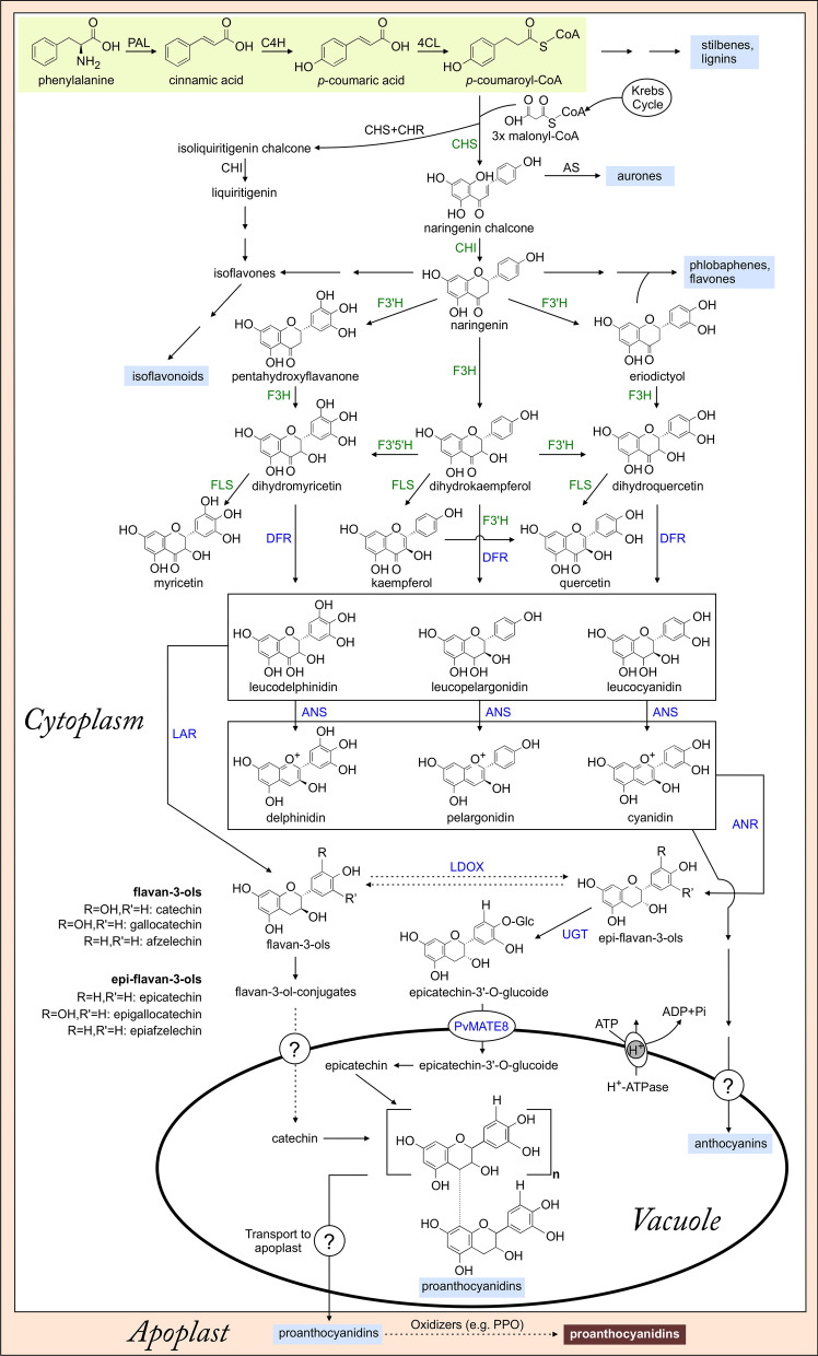 - Abrahams S, Lee E, Walker AR, Tanner GJ, Larkin PJ, Ashton AR (2003) The Arabidopsis TDS4 gene encodes leucoanthocyanidin dioxygenase (LDOX) and is essential for proanthocyanidin synthesis and vacuole development. Plant J 35:624–636 - PubMed