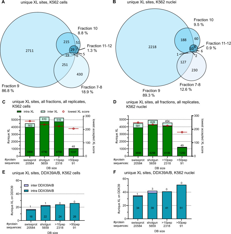 Cross-linking mass spectrometry has evolved as a powerful technique to study protein-protein interactions and to provide structural information. Low reaction efficiencies, and complex matrices lead to challenging system wide crosslink analysis. We improved and streamlined an Azide-A-DSBSO based in vivo crosslinking workflow employing two orthogonal effective enrichment steps: Affinity enrichment and size exclusion chromatography (SEC). Combined, they allow an effective enrichment of DSBSO containing peptides and remove the background of linear as well as mono-linked peptides. We found that the analysis of a single SEC fraction is effective to yield ~90% of all crosslinks, which is important whenever measurement time is limited, and sample throughput is crucial. Our workflow resulted in more than 5000 crosslinks from K562 cells and generated a comprehensive PPI network. From 393 PPI found within the nucleus, 56 are novel. We further show, that by applying DSBSO to nuclear extracts we yield more crosslinks on lower abundant proteins and showcase this on the DEAD-box RNA helicase DDX39B which is predominantly expressed in the nucleus. Our data indicates that DDX39B might be present in monomeric and dimeric forms together with DDX39A within the nuclear extracts analyzed.