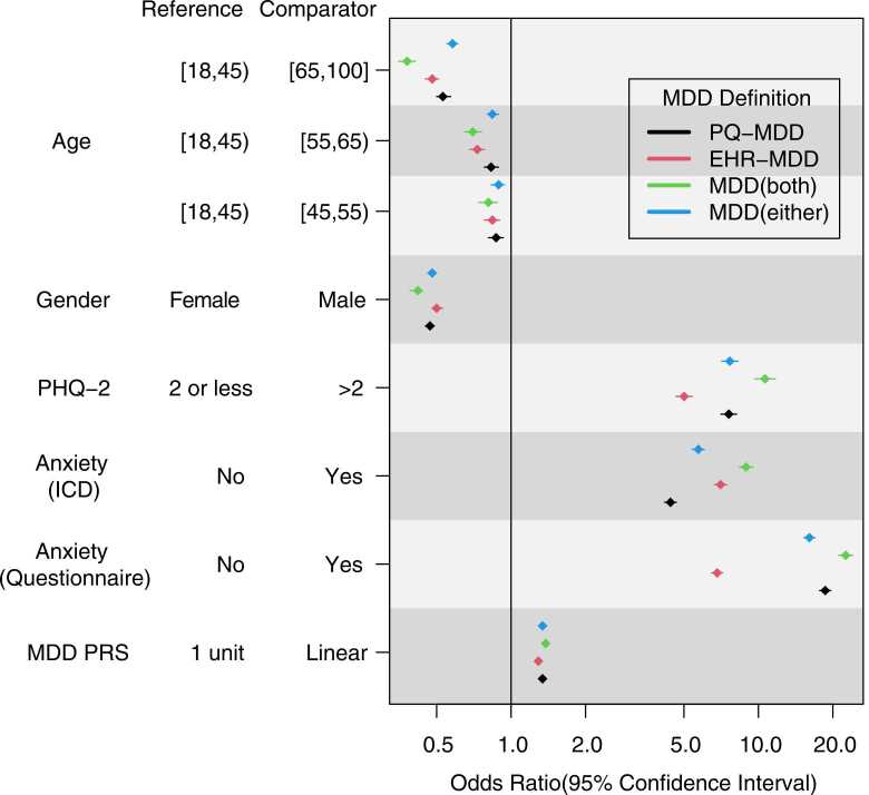 Conclusion: Our results demonstrate how the methods used to identify patients with history of MDD can affect sample characteristics and risk factor associations, highlighting the importance of considering phenotype ascertainment in the interpretation of research results.