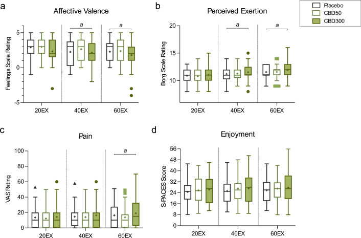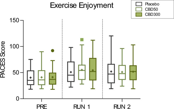 Conclusions: CBD (50 mg, 300 mg; acute) does not appear to alter the subjective experience of submaximal intensity exercise, impact endurance performance (i.e., TTE) or have compelling effects on physiological responses to exercise. Use of CBD by athletes is, therefore, unlikely to be ergolytic or ergogenic at low to moderate doses.