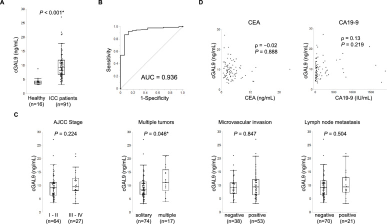 Methods: GAL9 expression levels in circulating and tumor cells were measured using enzyme-linked immunosorbent assay and immunohistochemistry (IHC) in 91 ICC surgical patients. The mRNA expression levels of candidate genes were analyzed in 44 available frozen tissue samples.