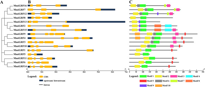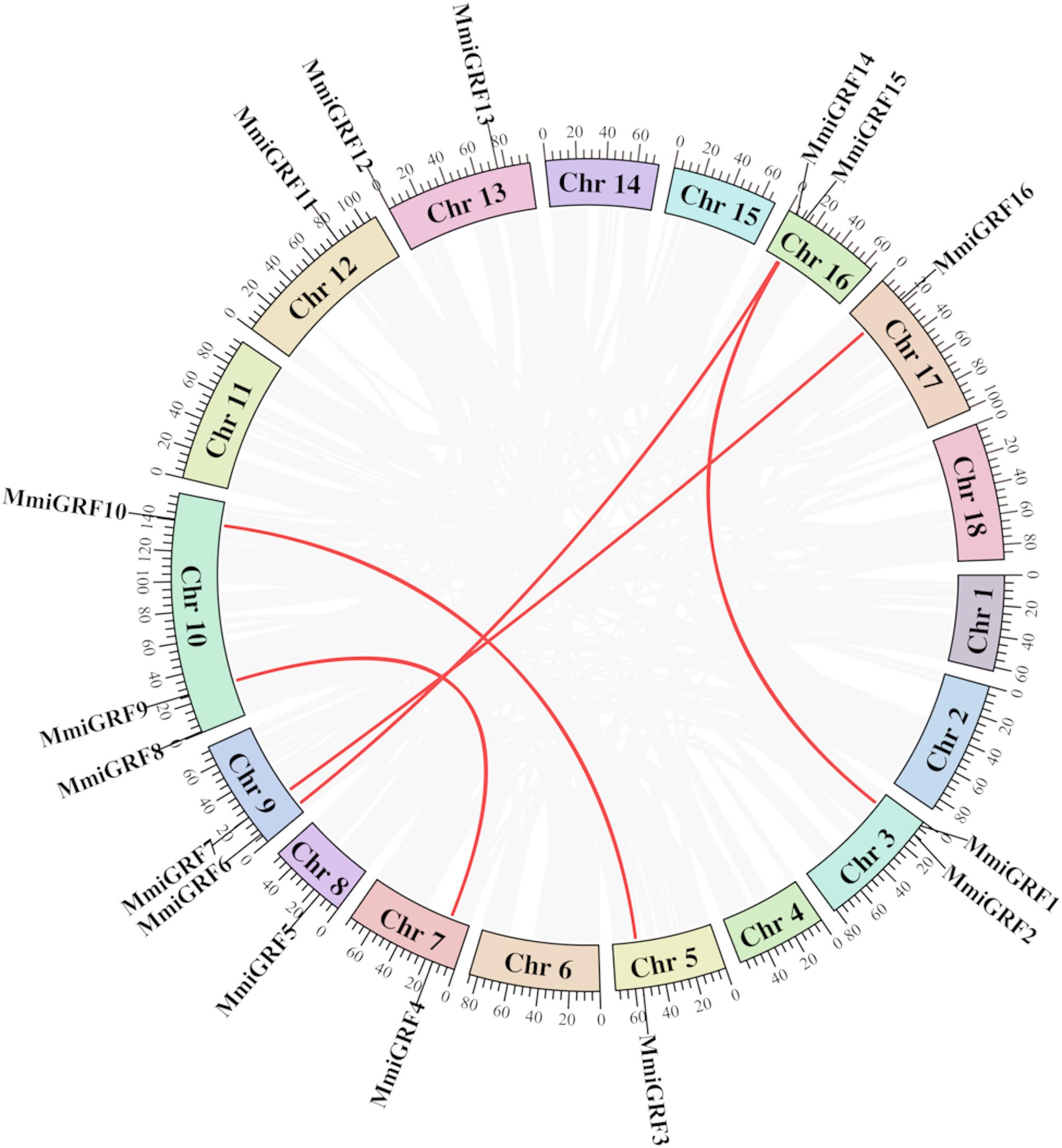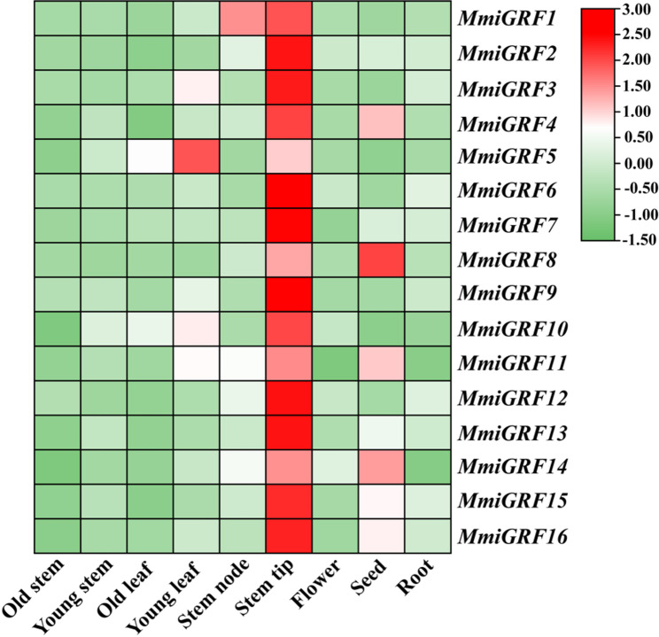 Results: We identified and characterized 16 GRF genes in M. micrantha, analyzing their phylogeny, gene structure, collinearity, and expression patterns. These genes were classified into six subfamilies and showed conserved synteny with GRFs from Arabidopsis thaliana and Asteraceae species, with all gene pairs under purifying selection. Expression profiling revealed high transcript levels of most MmiGRFs in stem tips and young tissues. Hormone treatments demonstrated that MmiGRFs responded differentially to GA3, ABA, IAA, BR, 6-BA, and MeJA, with MmiGRF8 notably upregulated by all treatments. Subcellular localization confirmed nuclear localization of MmiGRF proteins. Additionally, five miR396 members were predicted to target 15 MmiGRFs, with MmiGRF10 containing two distinct sites.