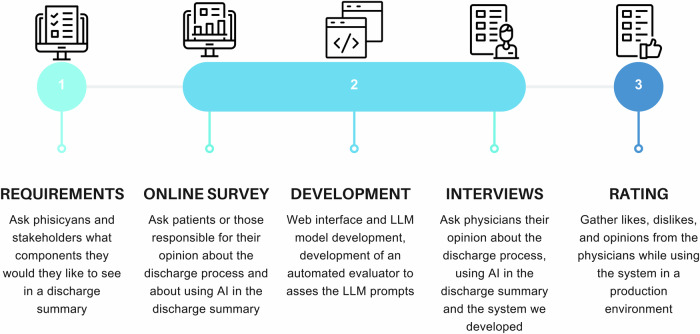 Methods: This study describes the development of a discharge summary system using large language models. By conducting an online survey and interviews, we gather feedback from end users, including physicians and patients, to ensure the system meets their practical needs and fits their experiences. Additionally, we develop a rating system to evaluate prompt effectiveness by comparing model-generated outputs with human assessments, which serve as benchmarks to evaluate the performance of the automated model.