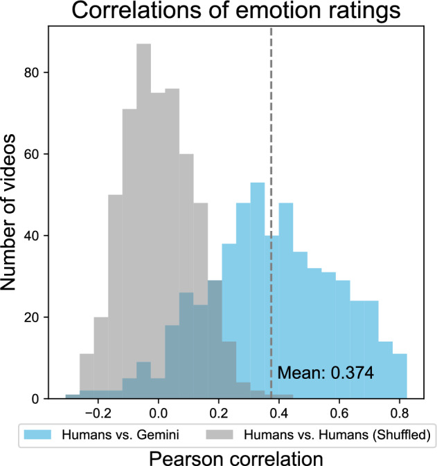 Correspondence of high dimensional emotion structures elicited from video clips between humans and multimodal LLMs
