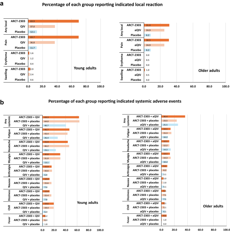 Findings: The geometric mean ratio (ARCT-2303/ARCT-154) of neutralising antibodies against Omicron XBB.1.5.6 on Day 29 was 2.7 (95% confidence interval (CI): 2.3-3.2), and the seroconversion rate difference was 28.4% (21.8-34.9); both met the prespecified superiority criteria. Concomitant administration of ARCT-2303 had no impact on the immune response to the quadrivalent influenza vaccine antigens, whether the non-adjuvanted vaccine given to 18‒64 year-old adults or the adjuvanted vaccine given to adults 65 years and older. The non-inferiority of the immune response against Omicron XBB.1.5.6 was also demonstrated when ARCT-2303 was co-administered or administered separately.