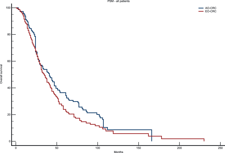 Materials and methods: We retrospectively analysed 1209 patients with metastatic CRC profiled using FoundationOne® CDx, a clinically validated next-generation sequencing assay targeting 324 cancer-related genes. Patients were classified as EO-CRC (n = 298) or AO-CRC (n = 911). Genomic alterations, including amplifications, deletions, and point mutations, were compared between the groups. Overall survival (OS) was assessed through 1 : 1 propensity-score-matched cohorts adjusted for key clinical and molecular covariates.