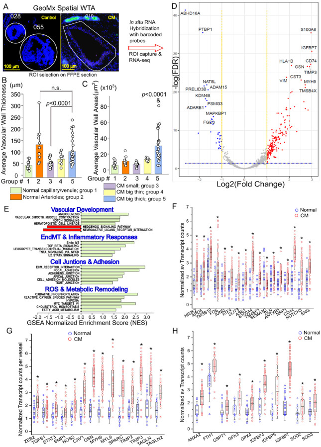 Methods: We applied spatial whole-transcriptome profiling (GeoMx) and gene set enrichment analysis within CM lesions at single vasculature level. Differentially expressed genes were validated by immunofluorescence staining. Phosphoproteomics was profiled to uncover lesion-wide phosphorylation sites on proteins. Single-cell RNA sequencing was performed on CM-derived induced pluripotent stem cells (iPSCs) to determine differentiation trajectories of lesional vascular lineages. In silico gene perturbation was used to predict candidate genes for modulating vascular pathological progression, followed by functional validation in CM iPSC-derived endothelial cells (ECs) using a Tet-on system.