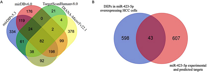 Methods: We generated an HCC cell line stably overexpressing miR-423-5p via lentiviral transduction. Total proteins were extracted from SNU-387 cells, enzymatically digested into peptides, and subsequently analysed by liquid chromatography-tandem mass spectrometry (LC-MS/M). Raw spectral data were processed and quantified using MaxQuant. Differentially expressed proteins (DEPs) were defined based on fold-change (|log2FC| ≥ 1) and false discovery rate (FDR < 0.05). The full proteomic dataset is available via the ProteomeXchange repository (identifier: PXD064869). Functional enrichment analysis of DEPs were performed using DAVID and Reactome. To assess clinical relevance, predicted and validated miR-423-5p targets were integrated with The Cancer Genome Atlas (TCGA) Liver Hepatocellular Carcinoma (LIHC) dataset using GEPIA platform. Survival analyses were performed using the Kaplan-Meier method.