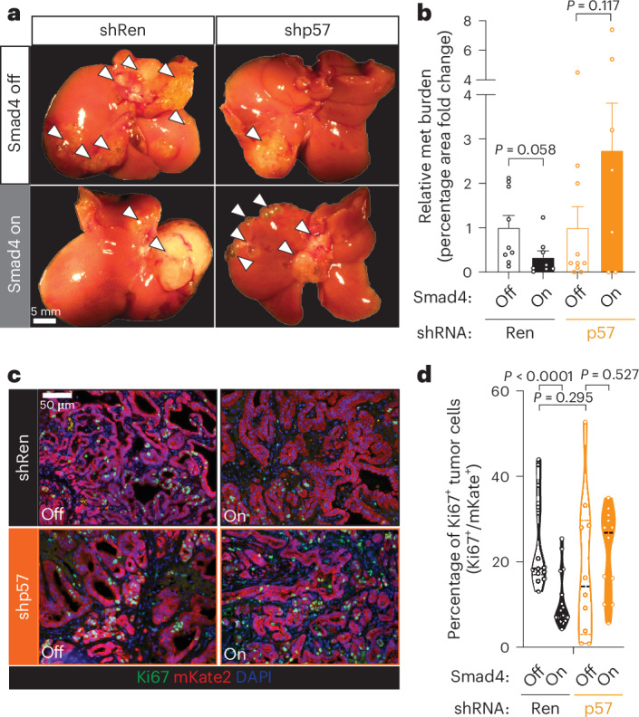 The role of driver gene mutations in sustaining tumor growth at metastatic sites is poorly understood. SMAD4 inactivation is a paradigm of such mutations and a hallmark of pancreatic ductal adenocarcinoma (PDAC). To determine whether metastatic tumors are dependent on SMAD4 inactivation, we developed a mouse model of PDAC that enables spatiotemporal control of Smad4 expression. While Smad4 inactivation in the premalignant pancreas facilitated the formation of primary tumors, Smad4 reactivation in metastatic disease suppressed liver metastases but promoted lung metastases. These divergent effects were underpinned by organ-biased differences in the tumor cells' chromatin state that emerged in the premalignant pancreas and were distinguished by the dominance of KLF4 versus RUNX1 transcription factors. Our results show how epigenetic states favored by the organ of residence can influence the output of driver mutations in metastatic tumors, which has implications for interpreting tumor genetics and therapeutically targeting metastatic disease.