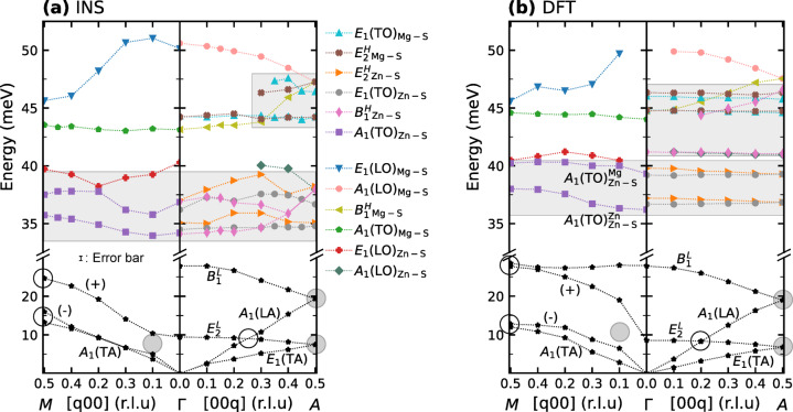 Cubic pseudo-unary A1-xBx high-entropy metallic alloys and pseudo-binary A1-xBxC disordered semiconductor alloys set a benchmark to explore how physical properties are impacted by disorder. Through its diversity, the lattice dynamics offers a unique playground to assign the relevant length scales at which operate various kinds of disorders induced by alloying. (i) In high-entropy metallic alloys, the overdamping of the bond-collective (multi-bond→1-mode) acoustic modes at short wavelength originates from force-constant fluctuations. (ii) In semiconductor alloys, the lattice mismatch splits, at any wavelength, the bond-specific (1-bond→1-mode) optical modes in duos distinguishing "same" from "alien" environments, as explained by the percolation model. Zn1-xMgxS is ideal to test both univocal assignments. Its force-constant disorder is small, reducing the cause for overdamping of the acoustic modes. Its local strain is inverted, the lighter substituent being the larger one and forming the longer bond. This forecasts a dramatic inversion of the mode-duos. Further, its wurtzite structure enables (iii) to test whether/how the percolation model for the mode-duos transfers under lowering the crystal symmetry from cubic to hexagonal. The triple acoustic-(i)/optical-(ii-iii) test on Zn1-xMgxS, combining inelastic neutron scattering with first-principles simulations, is positive. This highlights a few key points behind the lattice dynamics of atomic alloys.