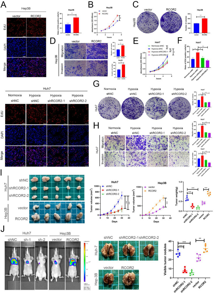Methods: We employed RNA sequencing, The Cancer Genome Atlas (TCGA) data analysis, clinical data analysis of HCC, and tissue microarray immunohistochemical analysis to identify key genes associated with hypoxia regulation and immune evasion. We investigated the biological functions of REST corepressor 2 (RCOR2) in tumor progression and immune evasion through mass cytometry, multiplex immunofluorescence, an orthotopic liver transplantation tumor model, in vitro co-culture systems, flow cytometry, and immunohistochemical analysis. Additionally, we used molecular techniques such as RNA sequencing, chromatin immunoprecipitation sequencing, and mass spectrometry to gain deeper insights into the potential molecular mechanisms underlying RCOR2.
