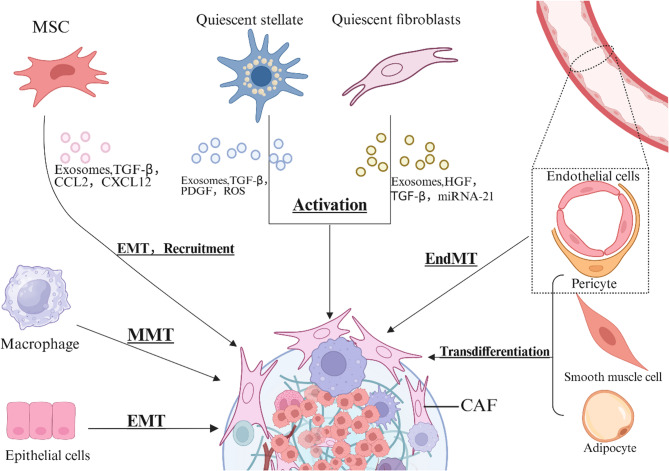 In recent years, tumor metastasis has become one of the major causes of high recurrence and mortality in cancer patients. Owing to multiorgan involvement, metastatic cancers are now clinically difficult to cure and often have a very poor prognosis. In recent years, an increasing number of studies have shown that the establishment of a premetastatic niche (PMN) is necessary for tumor metastasis. Cancer-associated fibroblasts (CAFs), which are closely related to tumor development, are deeply involved in regulating PMN establishment. By regulating EVs, metabolism and other pathways, CAFs actively shape microenvironmental characteristics, including inflammation, angiogenesis, increased vascular permeability, lymphangiogenesis, immunosuppression and extracellular matrix (ECM) remodeling. With the development of single-cell sequencing technology, our understanding of the role and significance of heterogeneous CAFs in the PMN has improved. Multiple therapeutic strategies targeting CAFs in the PMN have also been developed. This article focuses on the crosstalk of different subtypes of CAFs with other stromal cells, the mechanisms by which CAFs of different origins mediate PMN formation, and the emerging cancer therapeutic strategies by which CAFs have been targeted in recent years.