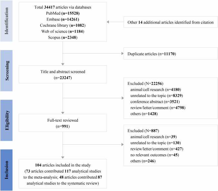 Results: A total of 34,417 articles were identified, of which 73 met the eligibility criteria for inclusion in the meta-analysis, and 48 were included in the systematic review. The analysis demonstrated that infections with cytomegalovirus (CMV) (odds ratio [OR] = 1.41; 95% confidence interval [CI]: 1.03, 1.93), severe acute respiratory syndrome coronavirus 2 (SARS-CoV-2) (OR = 1.88; 95% CI: 1.53, 2.32), hepatitis C virus (HCV) (OR = 1.39; 95% CI: 1.14, 1.69), and human herpesvirus (HHV) (OR = 1.24; 95% CI: 1.02, 1.51) were associated with an increased risk of AD. Regarding PD, infections with hepatitis B virus (HBV) (OR = 1.18; 95% CI: 1.04, 1.35) and HCV (OR = 1.29; 95% CI: 1.18, 1.41) were identified as risk factors. Conversely, no significant correlation was found between any viral infection and the risk of ALS.