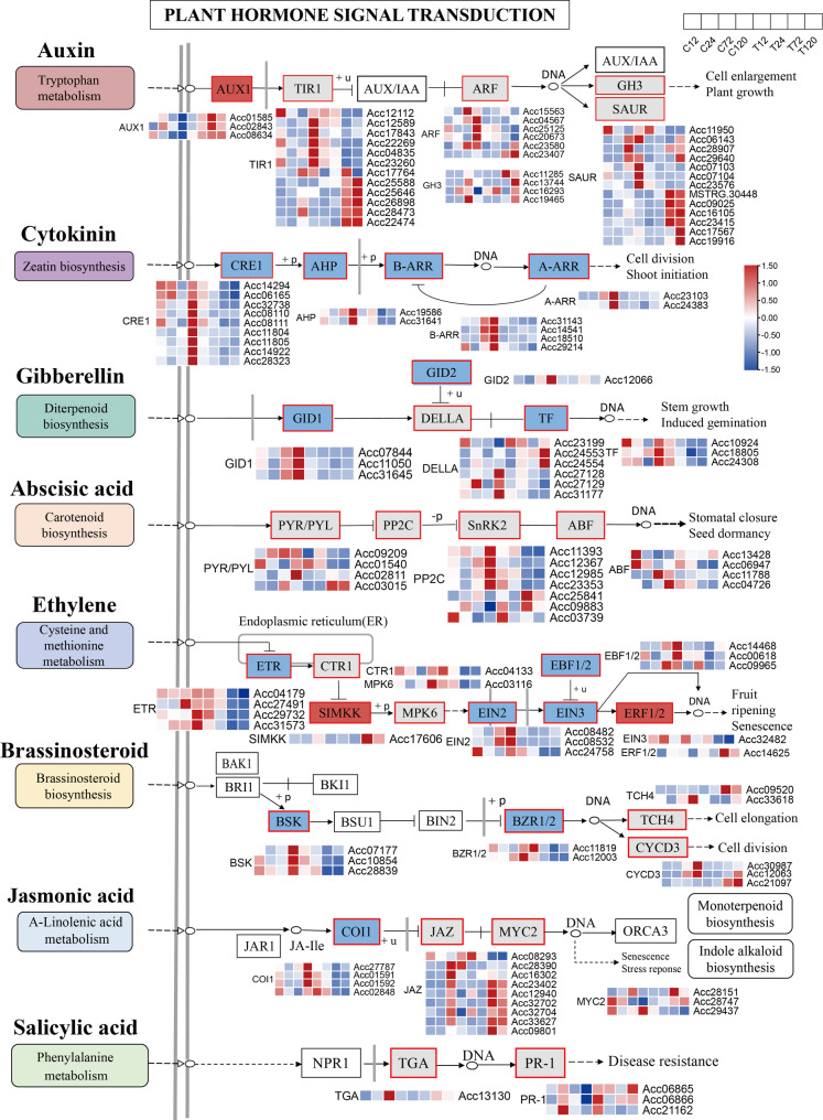 Conclusions: Significant changes in kiwifruit tissue morphology, gene expression, and metabolite profiles were observed after 72 h of B. dothidea infection. The plant hormone signal transduction and phenylpropanoid biosynthesis pathways are closely associated with the pathogenesis of kiwifruit soft rot. The MYB transcription factor (Acc32263) and the ChlH-like gene (Acc00854) are likely to be the key regulators. This study identifies the core regulatory pathways and genes involved in kiwifruit soft rot, provides new insights into the pathogenic mechanism of B. dothidea, and offers theoretical support for developing effective strategies to control kiwifruit soft rot.