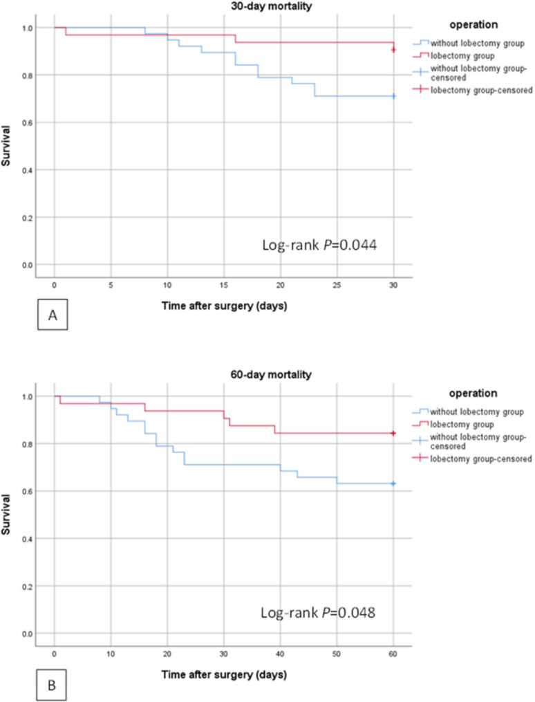 Conclusion: Lobectomy significantly improves the 30- and 60-day mortality outcomes compared to non-lobectomy surgery, making it a viable option for pharmacotherapy-refractory lung abscess.