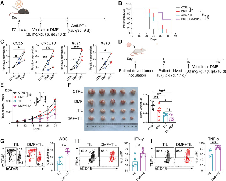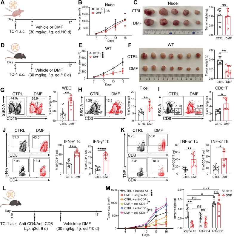 Conclusion: This work elucidated that DMF reprograms CC cells to activate the mtDNA-cGAS-STING pathway, fostering a chemokine-rich microenvironment that recruits CD8+ T cells. The synergistic effect of DMF and PD-1 blockade or TIL therapy underscores its potential as an immunostimulatory adjuvant. These findings suggest that DMF holds promise as a novel immunotherapeutic strategy for improving clinical outcomes in CC.