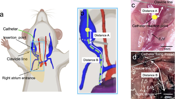 Vascular access presents unique challenges in experimental mice due to their small size and anatomical constraints. Achieving reliable vascular access is crucial for optimizing experimental outcomes, especially in protocols requiring serial blood sampling or repeated intravascular therapy. Although vascular access buttons (VABs) offer significant advantages, their widespread adoption has been limited by technical challenges and a lack of comprehensive validation regarding their safety, feasibility, and long-term management. To address these gaps, we conducted a comprehensive evaluation of VAB implantation in mice. The technical success rate was 90.2%, and the 28-day survival rate was 80.4%. Optimal catheter insertion lengths determined by intraoperative and autopsy findings, and computed tomography were 9.5 ± 0.6 mm (20-25 g), 10.1 ± 0.8 mm (25-30 g), and 11.2 ± 0.5 mm (> 30 g), respectively. Catheter patency was analyzed by stratifying the cohort into groups based on physical parameters such as catheter tip geometry, heparin concentration in the maintenance solution, and frequency of catheter maintenance procedures. Although approximately half of the mice lost complete catheter patency by day 14, the majority maintained partial patency at day 28 in all experimental groups except for two cases of complete occlusion in the 2 Fr square tip, low-dose heparin, weekly maintenance group. The evaluation of biodistribution and clearance with indocyanine green indicated that VAB administration may have advantages over conventional venipuncture. These standardized methodologies can provide a framework for diverse biomedical research applications, enhancing both the efficiency and reproducibility of studies requiring reliable vascular access.