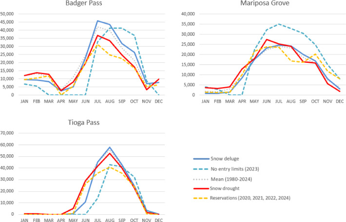 Snow droughts, deluge, and reservation systems interact to drive recreation access at Yosemite National Park