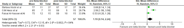 Results: 21 studies including 775 adults met inclusion criteria. Beta blockers significantly reduced left ventricular outflow tract (LVOT) gradient (Standardised mean difference (SMD) -1.57; 95% CI -2.07 to -1.07) and heart rate (SMD -1.19; 95% CI -2.24 to -0.14). Sensitivity analyses confirmed the robustness of the LVOT effect, while heart rate effects remained heterogeneous. Improvements in New York Heart Association class, exercise tolerance and symptom burden were consistently reported, although data were subjective and small in scale. Mortality evidence was limited to two retrospective cohorts with divergent findings.