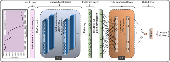 Estimation of protein content in wheat samples using NIR hyperspectral imaging and 1D-CNN