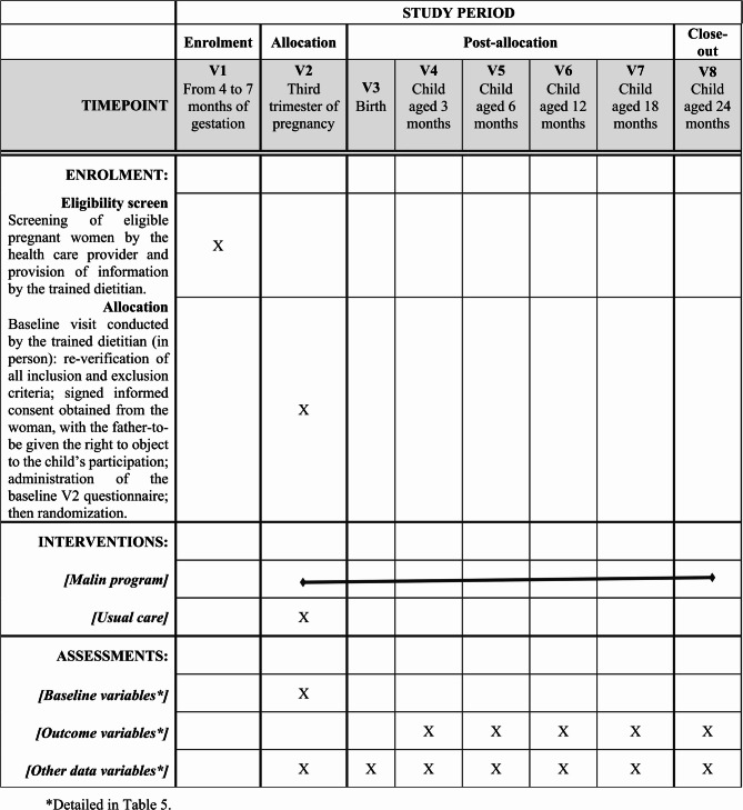 Methods: ECAIL is an ongoing single-blind, two-arm, parallel-group randomized controlled trial, with balanced (1:1) randomization at the individual level. Co-designed with the stakeholders of the Malin program, the trial has been implemented since 2017 in Northern France. Pregnant women are screened for social disadvantages at the main hospital maternity wards in Lille and Valenciennes with the assistance of healthcare providers. Eligible participants are then enrolled for follow-up by trained dietitians, who provide home visits until the child’s second birthday. Participants in the intervention arm receive the two components of the Malin program: (1) personalized support, including the promotion of breastfeeding, advice, and practical tips for a balanced diet and active lifestyle and (2) incentives to access kitchen utensils and healthy foods at reduced prices. Participants in the control arm receive usual care. Primary and secondary outcomes include rate and duration of breastfeeding and complementary feeding practices, dietary intake and lifestyle patterns in children at age 1 and 2 years, and the risk of obesity at age 2. Quantitative data are primarily collected with face-to-face questionnaires and anthropometric measurements. Additionally, semi-structured interviews with study participants and stakeholders will contribute to the process evaluation of this complex intervention.