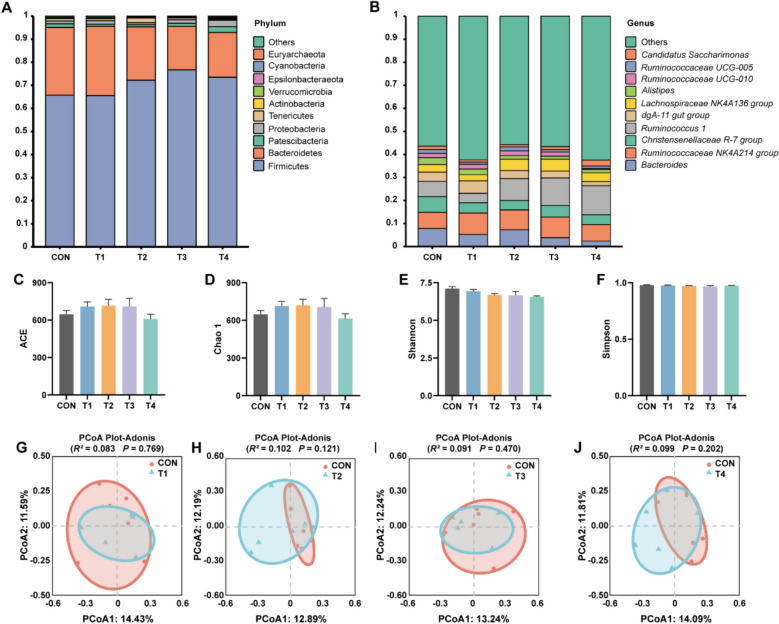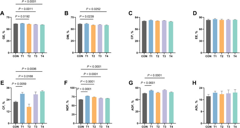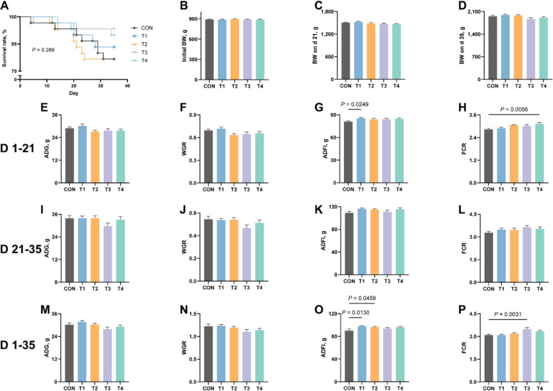 Results: The results revealed that linear trend responses of body weight (BW) to XOS on d 21 and 35 (P ≤ 0.05). During d 1-21, 0.2 g/kg XOS increased average daily feed intake (ADFI) while 0.5 g/kg improved feed conversion ratio (FCR) significantly (P ≤ 0.05). Weight gain rate (WGR) showed a linear trend, while FCR showed a quadratic response (P ≤ 0.05). Throughout the 35-d trial, 0.2 and 0.3 g/kg XOS enhanced ADFI, and 0.4 g/kg XOS improved FCR significantly, average daily gain (ADG) demonstrated linear dose-responsiveness, while WGR and FCR showed quadratic trends (P ≤ 0.05). Notably, 0.2 g/kg XOS elevated serum glutathione peroxidase (GSH-Px) activity and ileal secretory immunoglobulin A (sIgA) levels. Furthermore, 0.3, 0.4 and 0.5 g/kg XOS reduced jejunal malonaldehyde (MDA) content, 0.4 g/kg XOS decreased serum MDA, and 0.5 g/kg XOS elevated serum immunoglobulin M (IgM) significantly (P ≤ 0.05). 0.2, 0.4, 0.5 g/kg XOS improved the digestibility of crude fiber (CF), 0.2 and 0.4 g/kg XOS increased acid detergent fiber (ADF), and neutral detergent fiber (NDF) also increased among all treatments, although 0.5 g/kg XOS reduced cellulase activity significantly (P ≤ 0.05). Furthermore, graded levels of XOS significantly changed the relative abundance of specific bacteria, and 0.4 and 0.5 g/kg XOS enhanced the content of valeric acid significantly (P ≤ 0.05).
