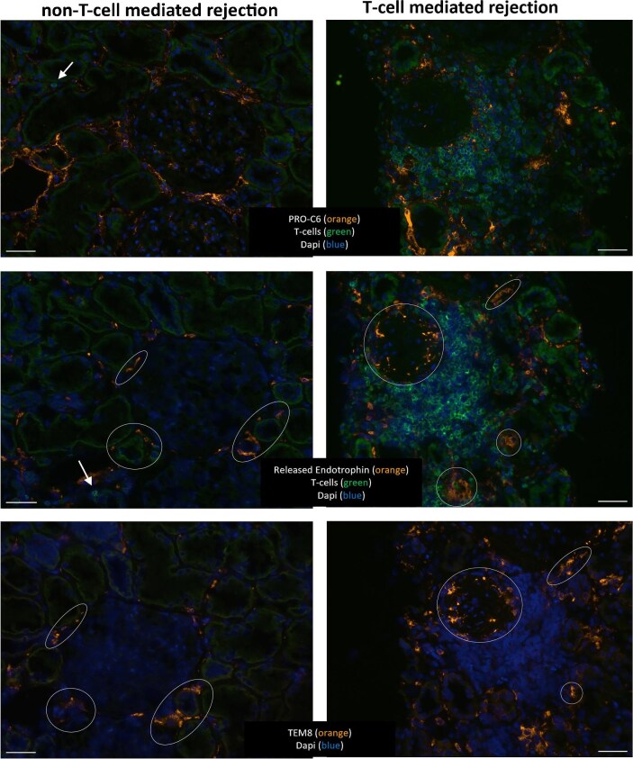 Background: Endotrophin, a C-terminal pro-collagen type VIα3 fragment, has been shown to correlate with kidney interstitial fibrosis, kidney outcome measures and survival in various kidney diseases and kidney transplantation. In this study we investigated whether endotrophin is associated with fibrogenesis in T cell-mediated rejection (TCMR), allowing its use as a non-invasive biomarker.