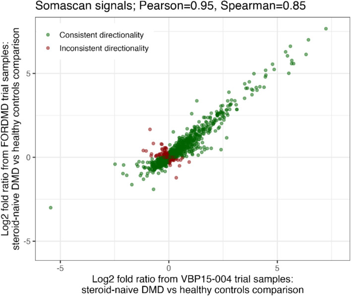 Circulating protein biomarkers identified in two independent clinical trial cohorts of glucocorticoid-naive Duchenne muscular dystrophy patients
