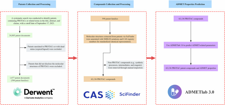 Proteolysis-targeting chimeras (PROTAC) are emerging and promising molecules for targeted protein degradation which have the potential to overcome critical bottlenecks in traditional small molecule drug development. However, the scarcity of publicly available data on molecular compound structures has significantly hindered computational drug discovery and AI-aided drug discovery/design (AIDD) in this field. Patents are an important but underutilized source of novel chemical structures in medicinal chemistry. In this study, we collected PROTAC patents published in 2013-2023 and the associated chemical structures disclosed therein. Through manual screening and expert curation, we identified 63,136 unique PROTAC compounds under 590 patent families, along with 252 targets. Additionally, we employed the ADMETlab 3.0 platform to predict 120 physicochemical properties for all compounds. The dataset is publicly available on the Figshare platform, and an online webserver ( http://protacpatentdb.com ) has also been established. Given the rapid growth of PROTAC patent literature, this dataset can be further expanded as new patents are continuously published.
