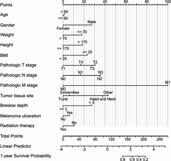 Results: From TCGA, we selected SKCM cases that had both complete clinical records and transcriptome data. We excluded 8.2% of samples due to missing information; this did not introduce any bias in age or sex. Patients with low SIGLEC8 levels tended to have T4 tumors, Breslow depth over 3 mm, ulceration, and more advanced disease (p < 0.05). High SIGLEC8 expression was linked to better OS (p < 0.001) in Cox analysis. This prognostic value held true across subgroups defined by age, gender, BMI, and stage (all p < 0.05). Differential expression analysis highlighted three immune genes-FCER2, CR2, and MS4A1-as strongly correlated with SIGLEC8. These findings point to a role in B‑cell and CD8⁺ T‑cell pathways within the hematopoietic lineage.