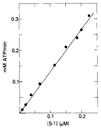 Relaxation of vertebrate skeletal muscle is thought to occur in the absence of Ca2+ as a result of tropomyosin physically blocking the binding of myosin to actin. This steric blocking model of muscle relaxation predicts that myosin subfragment 1 (S-1) will not bind to actin under conditions where the acto-S-1 ATPase rate is inhibited. Using stopped flow absorbance as a measure of binding, we have previously shown that when the rate of ATP hydrolysis is only 4% of the rate in the presence of Ca2+, S-1·ATP and S-1·ADP·Pi bind to actin-troponin-tropomyosin (regulated actin) with almost the same affinity as in the presence of Ca2+. This result has now been confirmed using sedimentation in an air-driven ultracentrifuge to directly measure the binding at pH 7.0, 25 °C, and μ = 18 m